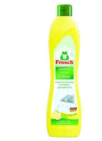 Termékleírás Termék információk Termékjellemzők: Tökéletesen eltávolítja a zsíros szennyeződéseket, vízkő- és szappan lerakódásokat, különösen kerámia, lakk rozsdamentes acél és kerámialapos felületeken. Hatásmód: A Frosch Citromos súrolótej hatékonyságát a természetes márvány őrlemény és a citromhéj kivonat természetes zsíroldó ereje biztosítja. Friss