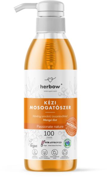 Herbow mosogatószer - Passionate nature 500 ml Kíméletes eljárással kinyert 12% mosódió-extraktummal Mosódió és narancsterpén tartalmának köszönhetően kiváló zsírtalanító tulajdonsággal rendelkezik. Hatékonyan távolítja el az ételmaradványokat és egyéb szennyeződéseket. Prémium csomagolás, pumpás adagolóval Jól habzó, rendkívül kiadós pH-semleges Parafinmente