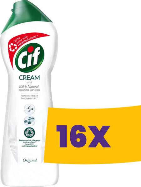 A mára vitathatatlanul klasszikussá vált, multifunkcionális Cif súrolókrém kíméletes a felületekkel, de kíméletlen a makacs szennyeződésekkel. A Cif Original súrolókrém mikrokristályokkal eltávolítja a makacs szennyeződéseket is a 100%-os ragyogó tisztaságért. Áthatol a legmakacsabb szennyeződéseken, mint az odaégett zsírfoltok és ételmaradékok, fürdőszobai vízk
