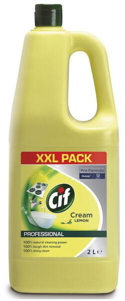 Cif Pro Formula Cream Lemon - Karcmentesen tisztító folyékony súrolószer citrom illattal GHS piktogram: Figyelmeztetés: Figyelem Figyelmeztető mondatok: H319 - Súlyos szemirritációt okoz Mikrorészecskéket tartalmazó, általános súroló krém fürdőszobai és konyhai használatra. Hatékonyan eltávolítja az odaégett ételmaradékot, a zsíros szennyeződéseket, a fürdőszobákb