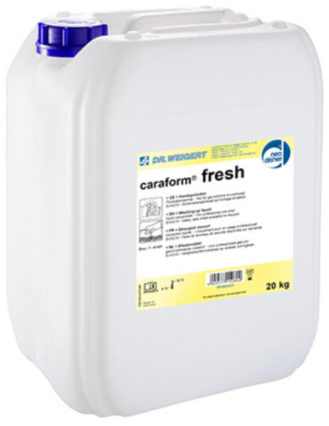 Frissítő, citromos illatú kézi mosogatószer és univerzális tisztítószer. Hatékonyan távolítja el a zsíros szennyeződéseket az edényekről és a felületekről. pH semleges, így kíméli a bőrt és az anyagokat. Dr. Weigert Caraform Fresh – Sokoldalú tisztítótársad a konyhában és a környezeteben A Dr. Weigert Caraform Fresh egy rendkívül hatékony, citromos illatú foly