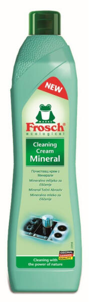 A Frosch folyékony súrolószer hatékonyan távolítja el a zsíros szennyeződéseket, a vízkő- és szappan lerakódásokat minden kerámia, zománc, rozsdamentes acél és üvegkerámia felületről. Miért környezetbarát, öko termék: Természetes alapanyagú tisztító formula Növényi eredetű tenzideket tartalmaz Foszfát-, formaldehid- és oldószermentes Fenntartható és energiatu