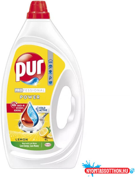 Mosogatószer 4 liter kézi Pur Power Lemon PUR Power Lemon kézi mosogatószer citrom illattal. Kettős, erős hatás makacs zsír- és keményítőfoltok ellen. A zsíroldó hatás mellett nagy mennyiségű aktív bontóenzimet is tartalmaz. Hatékonyan eltávolítja a zsírt, és gyengéd kozmetikai hatóanyagainak köszönhetően védelmet nyújt a kéznek. Kiszerelés: 4 kanna /karton Mosogat