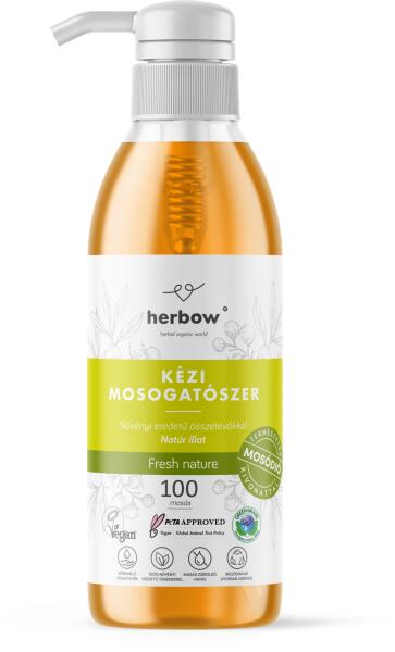 Herbow mosogatószer - Fresh nature 500 ml Kíméletes eljárással kinyert 12% mosódió-extraktummal Mosódió és narancsterpén tartalmának köszönhetően kiváló zsírtalanító tulajdonsággal rendelkezik. Hatékonyan távolítja el az ételmaradványokat és egyéb szennyeződéseket. Prémium csomagolás, pumpás adagolóval Jól habzó, rendkívül kiadós pH-semleges Parafinmentes/ás