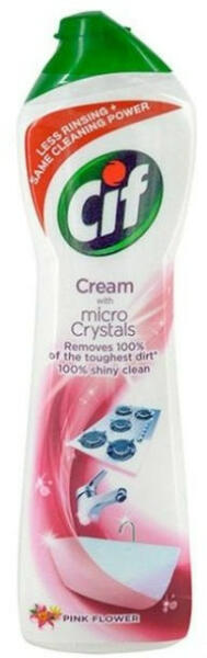 Cif Cream Pink krém dörzsölő tisztítószer kellemes virágillattal. Könnyedén fellazítja a szennyeződéseket és megtisztítja még a tisztán tarthatatlant is az egész házban, beleértve a modern felületeket is. A termék hatóanyagai mélyen behatolnak a foltokba, így a legmakacsabb szennyeződéseket is eltávolíthatják. A Cif Cream Pink nem csak a fürdőszoba és a konyha takar