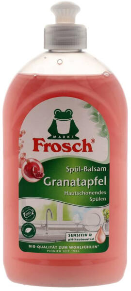 Hatékony tisztítás és a bőrápolás, PH semleges, bőrgyógyászatilag tesztelt termék. 500 ml-es mosogatószer; Frosch termék mosogatáshoz.