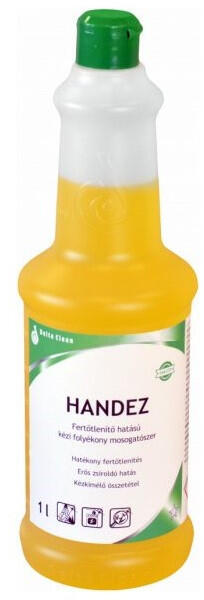 MOSOGATÓSZER 1 LITER KÉZI FERTŐTLENÍTŐ HATÁSSAL HANDEZ Fertőtlenítő hatású kézi mosogatószer GHS piktogram: Figyelmeztetés: Veszély Figyelmeztető mondatok: H302: Lenyelve ártalmas. H314: Súlyos égési sérülést és szemkárosodást okoz. H400: Nagyon mérgező a vízi élővilágra. H411: Mérgező a vízi élővilágra, hosszan tartó károsodást okoz. Jellemzői: hatékony