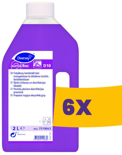 Fertőtlenítő hatású tisztítószer A Suma Bac D10 tisztító-, fertőtlenítő hatású (kombinált) koncentrált vegyszer, mely alkalmas valamennyi élelmiszerrel érintkező felület tisztító fertőtlenítésére. A Suma Bac D10 folyékony fertőtlenítő tisztítószer koncentrátum, amely a felületet egy lépésben tisztítja és fertőtleníti. A termék alkalmas valamennyi élelmisze