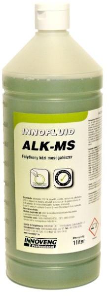 INNOFLUID ALK-MS kézi mosogatószer 1L - folyékony kézi mosogatószer - javasolt koncentráció:0,2 - 2% (2-20ml vegyszer 1 liter vízhez), - javasolt hőmérséklet: 30-50°C Alkalmazható az iparban, élelmiszeriparban, közétkeztetésben, és minden olyan területen ahol kiváló zsírtalanító hatásra és egyszerű kezelési módra van szükség az ipari és háztartási edények, eszkö