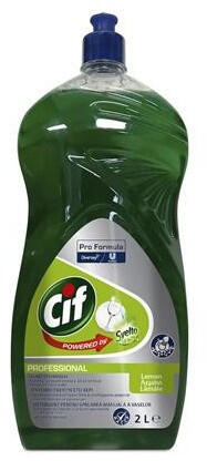 Mosogatószer, 2 l, CIF "Professional", citrom A Cif Pro Formula folyékony kézi mosogatószer mosogatószer edények, evőeszközök, üvegáruk, serpenyők és minden mosható konyhai eszköz kézi mosogatásához ajánlott. Összetétele kifejezetten az erős zsíros és a rászáradt ételmaradványok eltávolítására lett kifejlesztve, még hideg vízben is hatékony, használata szikráz