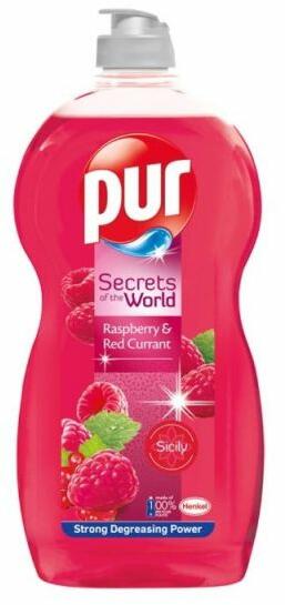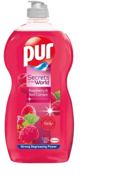 Pur Raspberry&Red Currant kézi mosogatószer erõteljes zsíroldó hatással. Kis mennyiség is elengendõ a tiszta és illatos edényekért. 100%-ban újrahasznosított műanyag csomagolásban. Összetevõk: 5-15% anionos felületaktív anyagok,