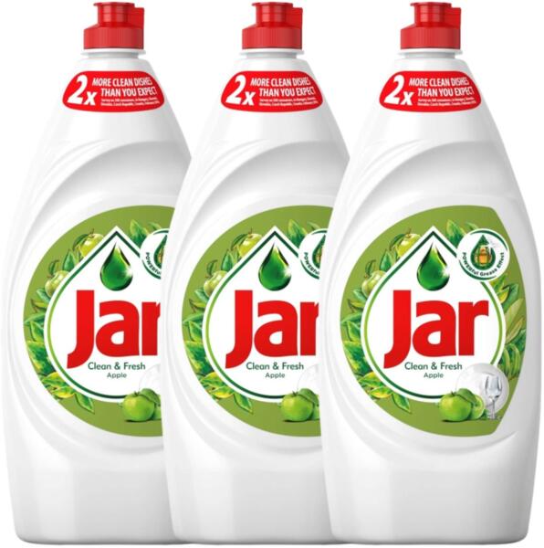 A Jar Clean & Fresh mosogatószer ragyogóan tisztává varázsolja az edényeket, valamint könnyed, tiszta és friss illatokkal tölti meg a konyhát a mosogató körül. A ragyogóan tiszta edények és mosogatógép érdekében próbálja ki a Jar Platinum All In One mosogatókapszulákat is. Jellemzői: - Kiszerelése: 3 db Jar Mosogatószer Alma - Gazdag formulával a ragyogóan tiszta e