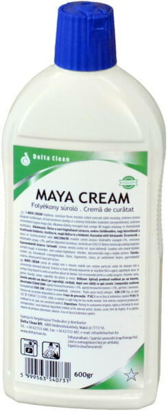 SÚROLÓKRÉM 500 ML/600G MAYA CREAM Folyékony súroló GHS piktogram: Figyelmeztetés: Figyelem Figyelmeztető mondatok: H315 Bőrirritáló hatású. H319 Súlyos szemirritációt okoz Jellemzői: finom eloszlású szilárd szemcsék stabil emulziója kellemes krémes állagával hatékonyan, de karcmentesen távolítja el a kemény felületekre lerakódott szennyeződéseket kellemes citromill