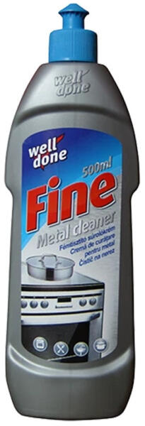 SÚROLÓKRÉM 500 ML FÉMTISZTÍTÓ WELL DONE FINE Rozsdamentes acél, króm, nikkel, valamint réz felületek ápolására. Már egyszeri használat után is hatékony! Alkalmas továbbá mosogatók, csapok, edények, tálcák, serpenyők tisztítására és fényesítésére. 20 flakon/karton Súrolókrém 500 ml fémtisztító Well Done Fine termék alkalmazásakor ügyeljen a biztonságra! Has