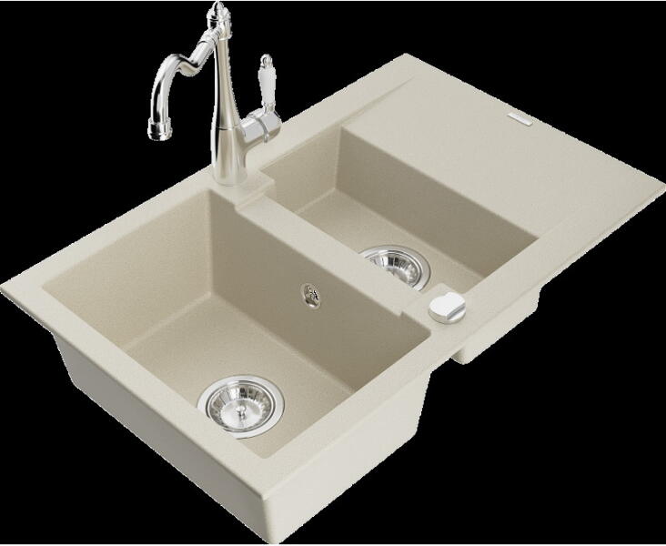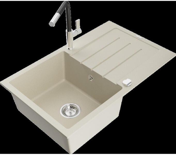 Mexen Kevin, gránit mosogató 586x458x190 mm, 1 kamrás és Carla mosogató csaptelep, bézs, 6517-69-670700-69 Gyártó: Mexen Sorozat: Kevin Szín: bézs Modell: 1 kamrás, rövid leeresztővel Felszerelés: munkalapra Hossza 586 mm Szélesség 458 mm Magasság: 190 mm Kamra mérete: 378x374 mm Kamra mélysége: 175 mm A lefolyó átmérője: Ø 90 mm Szifon + automatikus leeresztő csavar Anya