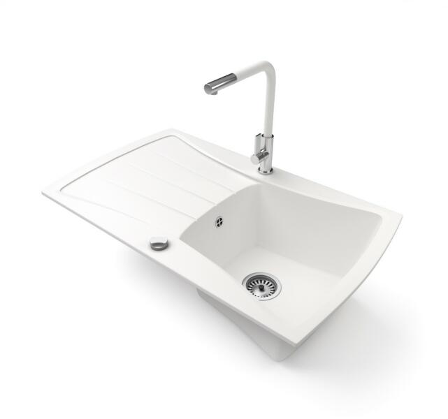 NERO Venezia gránit mosogató fehér színben. Egyedi és különleges formával tervezett egymedencés mosogató, kellően nagyméretű csepegtető résszel. A velencei gondolákat idéző, harmonikusan kialakított ívekkel a konyha esztétikus része, emellett anyagvastagságának köszönhetően rendkívül masszív konsktrukció. A mosogatón 2 lyuk található, egy a csaptelepnek és egy a