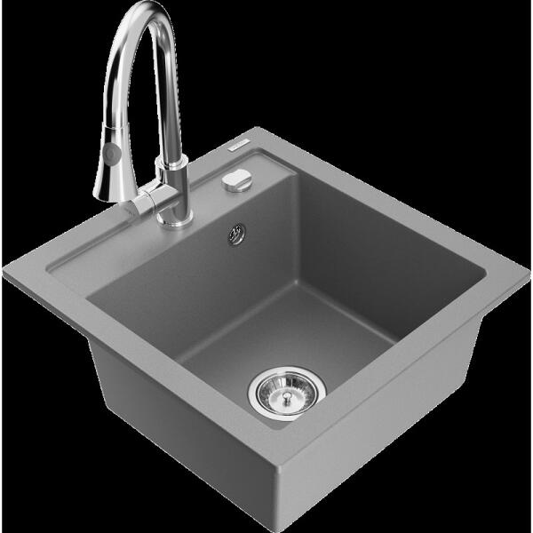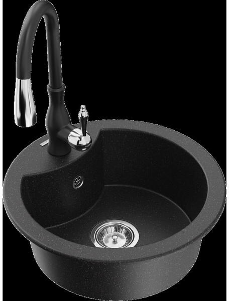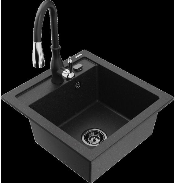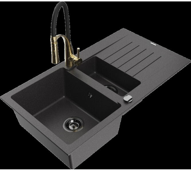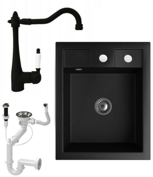NERO Parma amely kisméretű, de mégis nagyon tágas gránit mosogató csapteleppel, automata dugóemelős szifonkészlettell, matt fekete színben. Egyik nagy előnye, hogy már egy 40 cm széles konyhabútor elembe is beépíthető, az 50 cm-es mélysége kellő méretet biztosít. A medence mélysége is nagynak számít, 18 cm. Tökéletes bármilyen stílusú konyhába ahol az okos helykihas