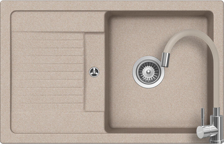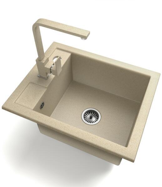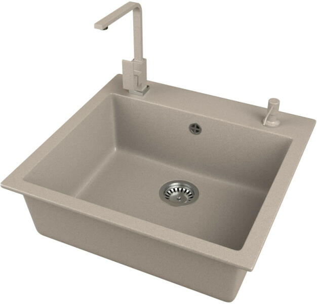 NERO Parma amely kisméretű, de mégis nagyon tágas gránit mosogató, csapteleppel, szifonkészlettel, mosogatószer adagolóval, homokbézs színben . Egyik nagy előnye, hogy már egy 40 cm széles konyhabútor elembe is beépíthető, az 50 cm-es mélysége kellő méretet biztosít. A medence mélysége is nagynak számít, 18 cm. Tökéletes bármilyen stílusú konyhába ahol az okos hely