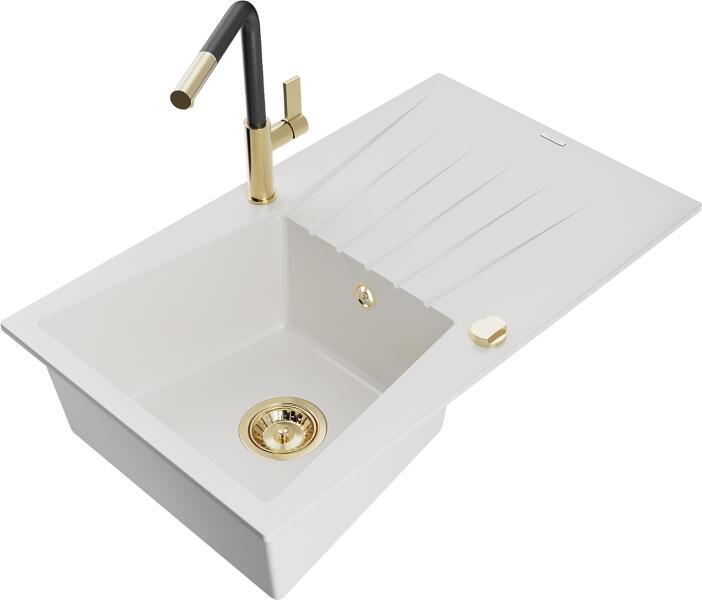Mexen Kevin, gránit mosogató 586x458x190 mm, 1 kamrás és Savita mosogató csaptelep, bézs, 6517-69-672601-70 Gyártó: Mexen Sorozat: Kevin Szín: bézs Modell: 1 kamrás, rövid leeresztővel Beépítés: a munkalapba való beágyazáshoz Méretek: 586 x 458 x 190 mm Kamra mérete: 378 x 374 mm Kamra mélysége: 175 mm A lefolyó átmérője: Ø 90 mm Szifon + automatikus leeresztő csavar A