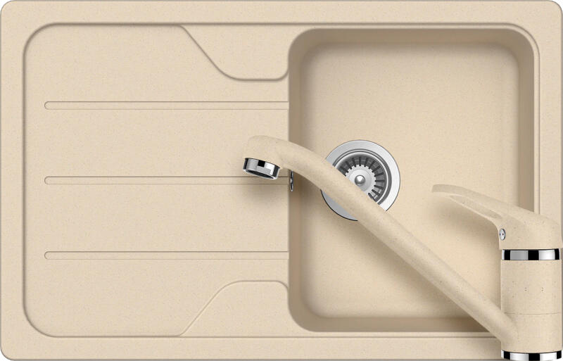 Alveus Rock 130 egymedencés csepptálcás gránit mosogató + Színazonos Alveus normál csaptelep Granital széria Különleges, kiváló minőségű kompozit anyagból készült mosogatómedence Egyedi megjelenés Munkalapra szerelhető modell 1 medencés + csepegtető tálcás Méret: 780 x 480 mm Medence mélység: 180 mm Minimum szekrény méret: 600 mm praktikus helytakarékos forma Ajánd