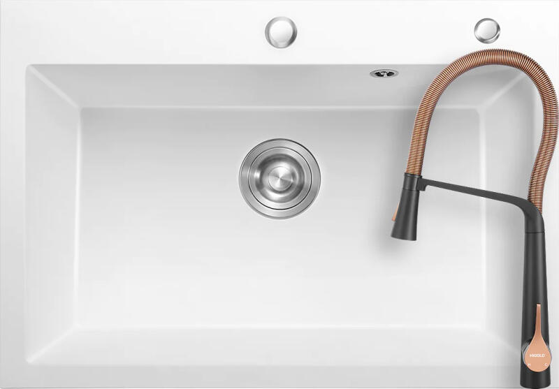 Higold 935004W konyhai mosogatótálca 680 x 480 mm, gránit kompozit, hagyományos beépítés, fehér. A kvarc mosogatókról való minden elképzelésnek eleget tesz. Jól néz ki. Minél többet használod, annál újabb. Hőálló és karcolásálló. Könnyen tisztítható. Egy törlés és az olajos, zsíros foltok is eltűnnek. Nagyon kevés ennyire sima és finom felületű kvarcból kés