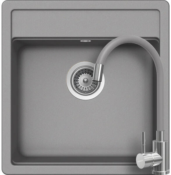 Schock Nemo N-100S konyhai mosogatótálca Cristalite Croma 490 x 510 mm, gránit, hagyományos beépítés, szürke munkalapba beépíthető, egymedencés, csepegtető nélküli, ideálisan illeszkedik a minimum 50 cm-es alsószekrényhez. A csaptelep helye előre elkészített, könnyedén áttörhető. A csomagban találja a használati útmutatót, amely részletes leírást ad a csaptelep hel