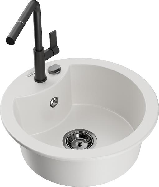 Mexen Diego konyhai mosogató: Gyártó: Mexen Sorozat: Diego Modell: 1 kamrás Beépítés: felülről a munkalapba süllyesztve Méretek: 488x488x167 mm Kamra mélysége: 157 mm Kamra átmérője: 406 mm Lefolyó átmérője: 90 mm Szifon + automatikus leeresztő csavar Anyaga: gránit (80% gránit - kő, 20% gyanta) Sima felület a könnyű tisztítás érdekében: igen Megnövelt ellenállás