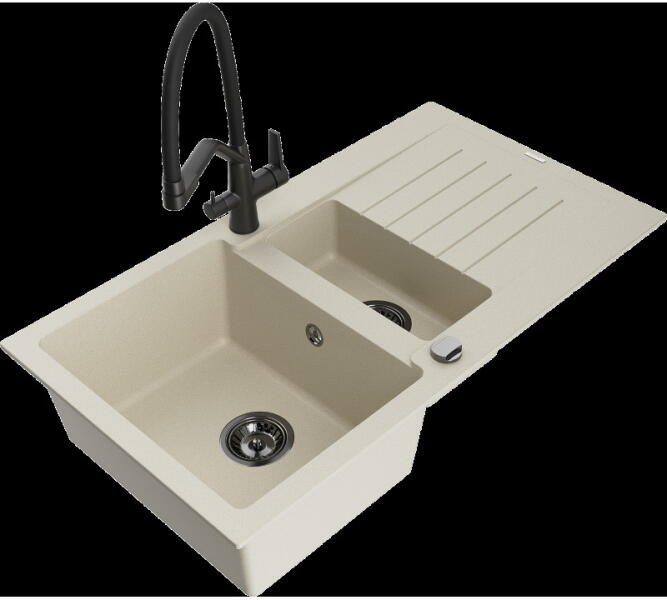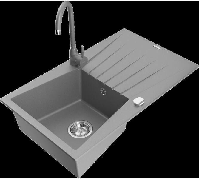 Mexen Elias konyhai mosogató: Gyártó: Mexen Sorozat: Elias Modell: 1 kamrás Beépítés: felülről a munkalapba süllyesztve Méretek: 795x480x200 mm Kamra mélysége: 190 mm Kamra mérete: 465x420 mm Lefolyó átmérője: 90 mm Szifon + automatikus leeresztő csavar Anyaga: gránit (80% gránit - kő, 20% gyanta) Sima felület a könnyű tisztítás érdekében: igen Megnövelt ellenállás