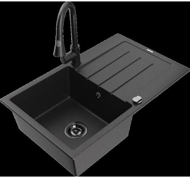 Mexen Enzo konyhai mosogató: Gyártó: Mexen Sorozat: Enzo Modell: 1 kamrás, rövid csepegtetővel Hossz: 576 mm Szélesség: 465 mm Magasság: 174 mm Kamra mélysége: 164 mm Kamra mérete: 395x320 mm Szifon + automatikus leeresztő csavar Anyaga: gránit (80% gránit - kő, 20% gyanta) Megnövelt ellenállás az ütésekkel, karcolásokkal, elszíneződésekkel, magas hőmérséklettel és hő