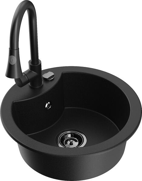 Mexen Diego konyhai mosogató: Gyártó: Mexen Sorozat: Diego Modell: 1 kamrás Beépítés: felülről a munkalapba süllyesztve Méretek: 488x488x167 mm Kamra mélysége: 157 mm Kamra átmérője: 406 mm Lefolyó átmérője: 90 mm Szifon + automatikus leeresztő csavar Anyaga: gránit (80% gránit - kő, 20% gyanta) Sima felület a könnyű tisztítás érdekében: igen Megnövelt ellenállás