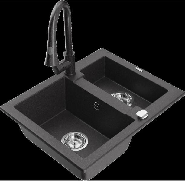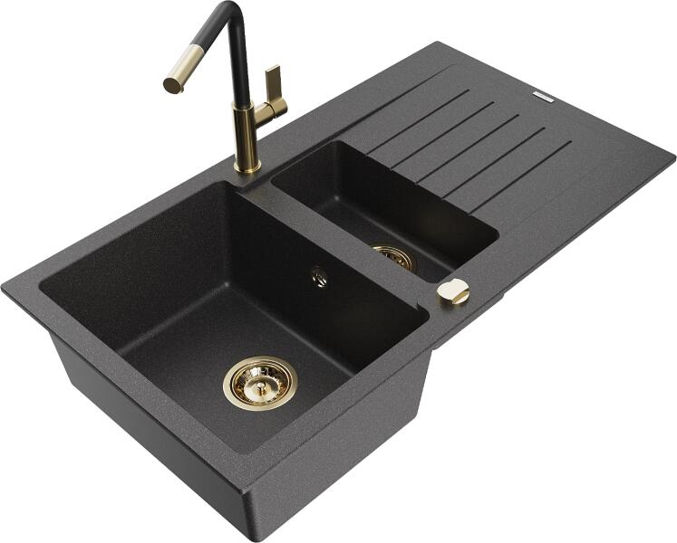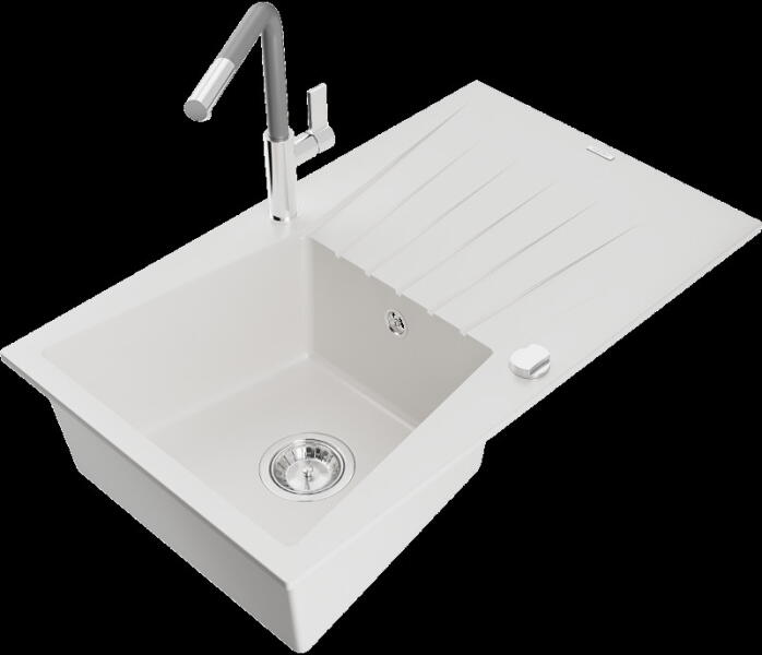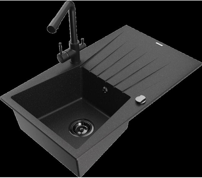 Matias konyhai mosogató: Gyártó: Mexen Sorozat: Matias Modell: 1,5-kamrás lefolyóval Beépítés: felülről a munkalapba való beágyazáshoz Hossz: 900 mm Szélesség: 505 mm Magasság: 200 mm Kamra mélysége: 180 mm (nagyobb), 115 mm (kisebb) Kamra mérete: 435x335 mm (nagyobb), 345x150 mm (kisebb) Lefolyó átmérője: 90 mm Szifon + automatikus leeresztő csavar Anyaga: gránit (80% gr