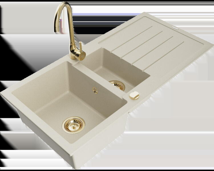 1 medencés, gránit mosogat, csepegtetővel, fekete csapteleppel|Kivitel: bézs|Beszerelési mód: süllyesztett|Minimális szekrény szélesség: 600 mm|Hosszúság: 780 mm|Szélesség: 490 mm|Magasság: 194 mm|Tartozékok mosógép vagy mosogatógép csatlakoztatásának lehetőségével|A hidrofób tulajdonsága taszítja a vízmolekulákat|Megfordítható mosogató - lehetőség a medence bal