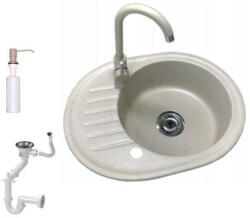 NERO B590 egymedencés + csöpögtetős gránit mosogató ovális kialakítással és benne kör alakú mosogató medencével. A közel 38 cm átmérőjű medence nagyobb edények mosogatására is ideális, így a teljes 59 cm-es hosszával egyszerre helytakarékos és jól használható. Ovális és kerek vonalvezetésével harmónikus formát visz a konyhába, íves csaptelepekkel nagyszerű p