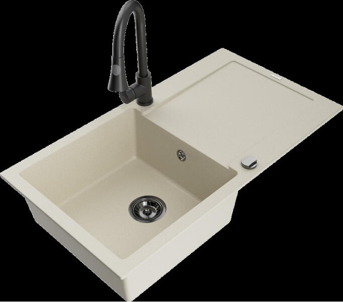 Leo konyhai mosogató: Gyártó: Mexen Sorozat: Leo Modell: 1-kamrás s csepegtetővel Hossza 900 mm Szélesség 500 mm Magasság: 190 mm Kamra mélysége: 180 mm Kamra mérete: 430x415 mm Alkalmas 500 mm-es szekrényekhez Szifon + automatikus leeresztő csavar Anyaga: gránit (80% gránit - kő, 20% gyanta) Sima felület a könnyű karbantartás érdekében: igen Megnövelt ellenállás az ütés