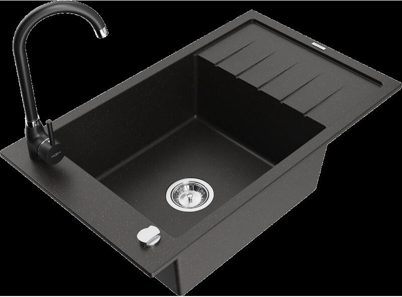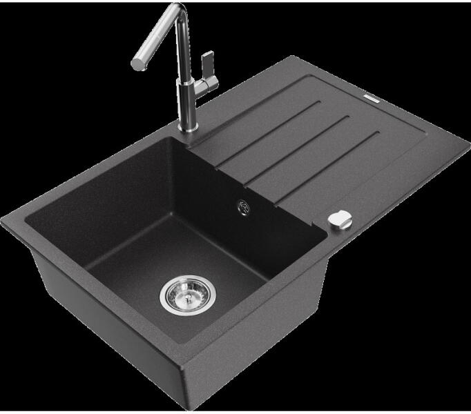 NERO Malta gránit mosogató, ami egyesíti a praktikus megoldást a bőséges helykínálattal és a harmonikus designnal. Méretes, 36 x 38 cm-es, medencével és kellően nagy csepegtető résszel rendelkezik, arányosan kialakítva. Minden igényt kielégít ami egy mosogatótól elvárható, amihez mindössze 78 cm hely szükséges. Egyenes és hajlított vonalvezetés harmonikus keveréke je