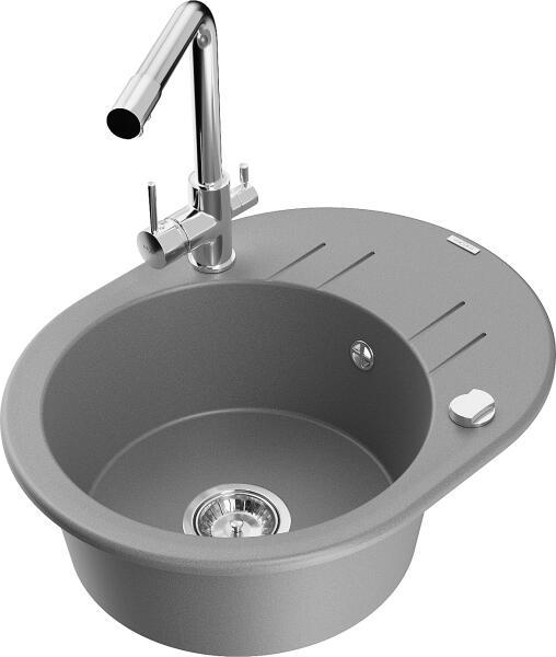 Mexen Kevin, gránit mosogató 586x458x190 mm, 1 kamrás és króm Duero csaptelep, szürke, 6517-71-671600-00 Gyártó: Mexen Sorozat: Kevin Modell: 1 kamrás, rövid leeresztővel Felszerelés: munkalapra Hossza 586 mm Szélesség 458 mm Magasság: 190 mm Kamra mérete: 378x374 mm Kamra mélysége: 175 mm A lefolyó átmérője: Ø 90 mm Szifon + automatikus leeresztő csavar Anyaga: gránit (80