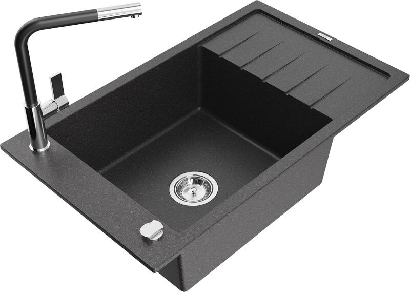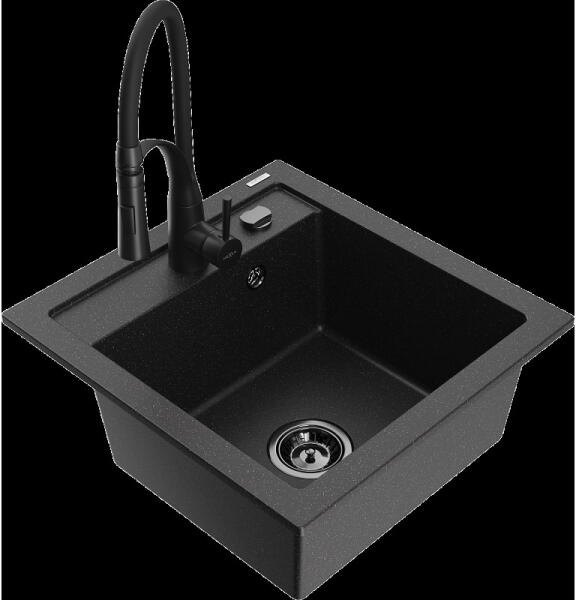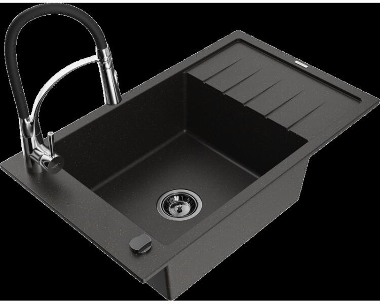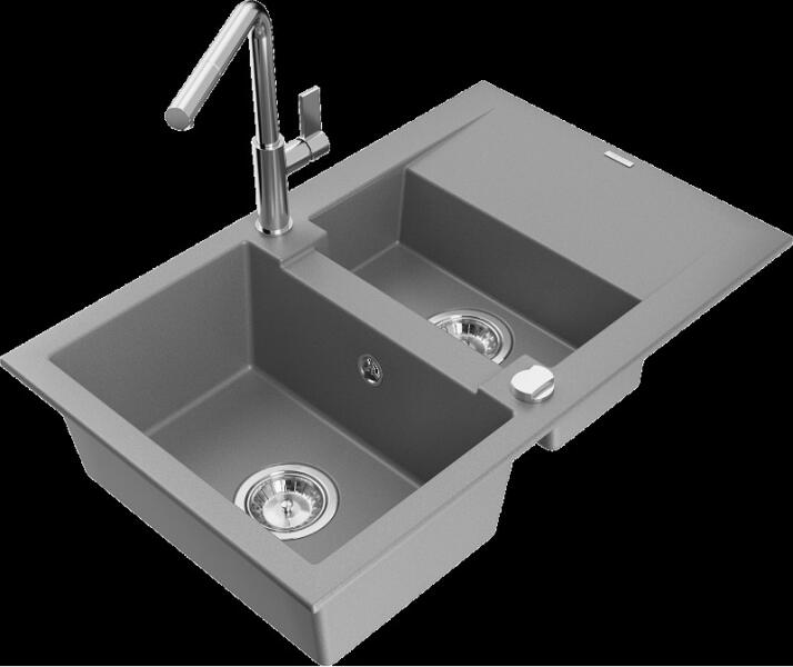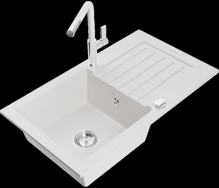 Mexen Elias konyhai mosogató: Gyártó: Mexen Sorozat: Elias Modell: 1 kamrás Beépítés: felülről a munkalapba süllyesztve Méretek: 795x480x200 mm Kamra mélysége: 190 mm Kamra mérete: 465x420 mm Lefolyó átmérője: 90 mm Szifon + automatikus leeresztő csavar Anyaga: gránit (80% gránit - kő, 20% gyanta) Sima felület a könnyű tisztítás érdekében: igen Megnövelt ellenállás