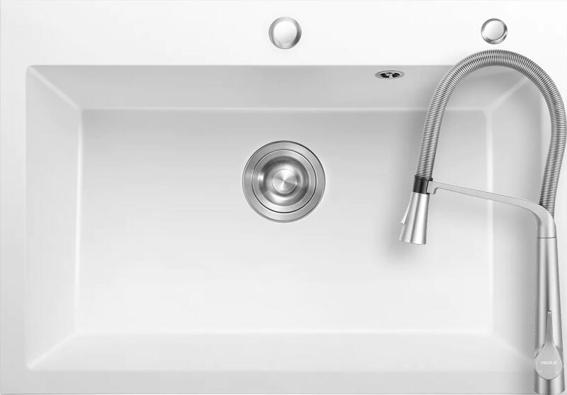 Higold 935004W konyhai mosogatótálca 680 x 480 mm, gránit kompozit, hagyományos beépítés, fehér. A kvarc mosogatókról való minden elképzelésnek eleget tesz. Jól néz ki. Minél többet használod, annál újabb. Hőálló és karcolásálló. Könnyen tisztítható. Egy törlés és az olajos, zsíros foltok is eltűnnek. Nagyon kevés ennyire sima és finom felületű kvarcból kés