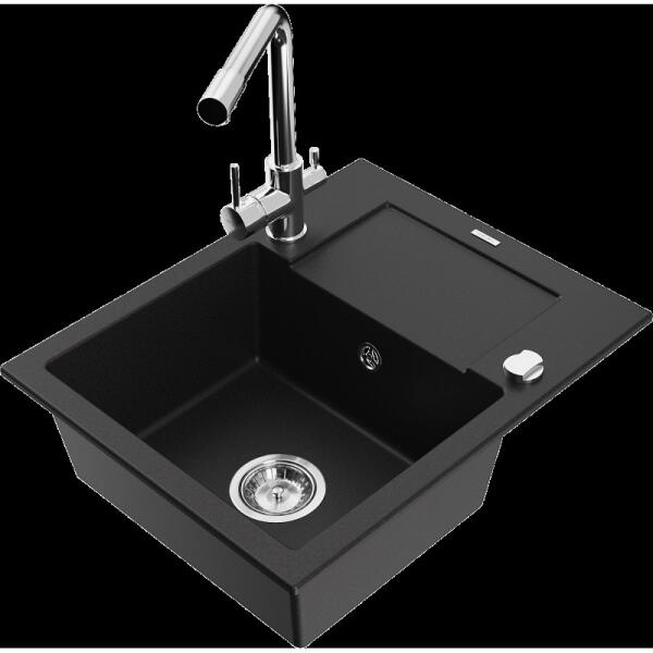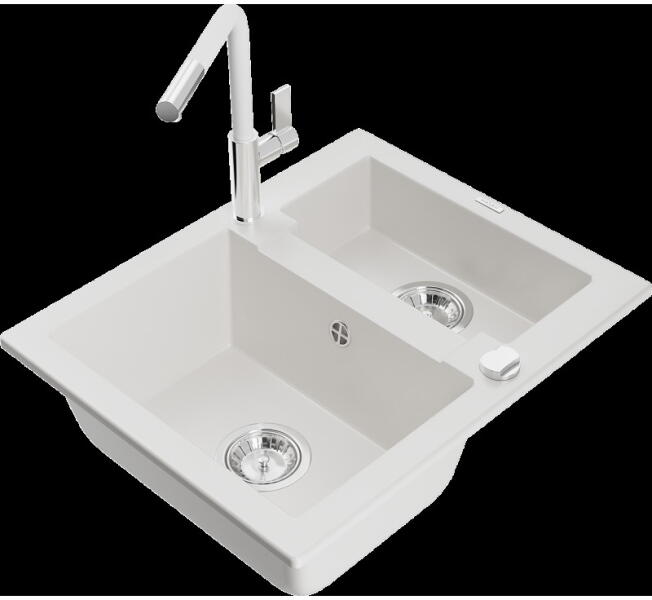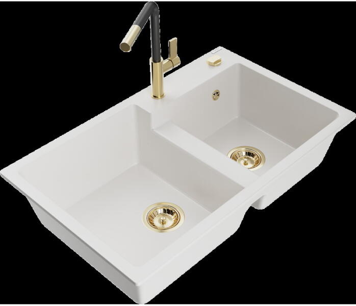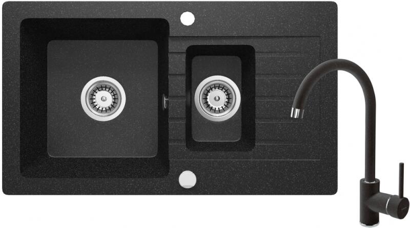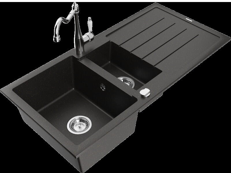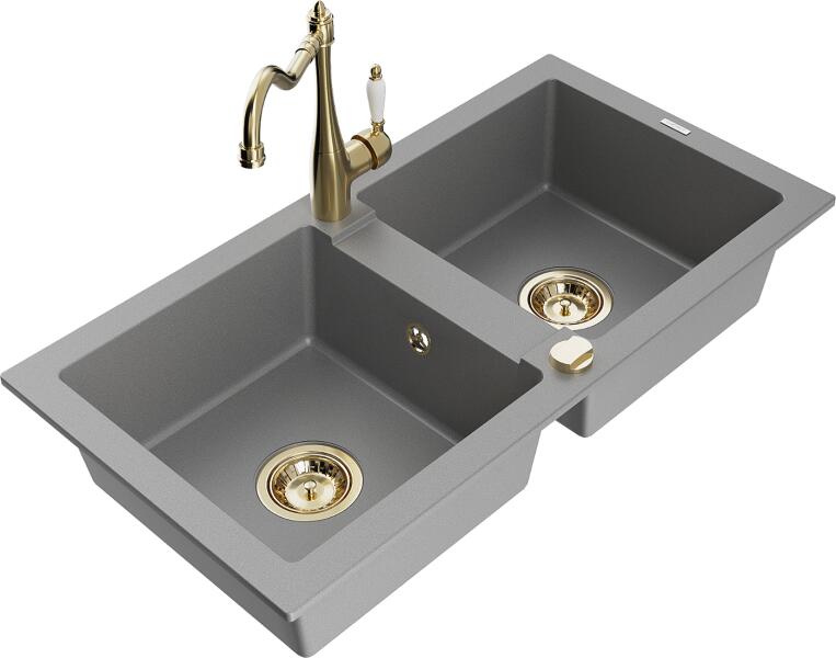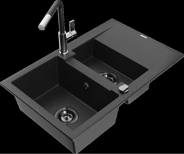Mexen Mario, gránit mosogató 820x436x161 mm, 2 kamrás és mosogató csaptelep Carla, szürke, 6504-71-670700-50 Gyártó: Mexen Sorozat: Mario + Carlo Mosogató: Méretek: 820x436x161 mm Kamra mélysége: 151 mm Kamra méretei: 356x336 mm Lefolyó átmérője: ø90 mm Típus: 2 kamrás Típus: felülről az asztal munkalapjába süllyesztve Anyaga: gránit (80% gránit adalékanyag 20% gyanta)