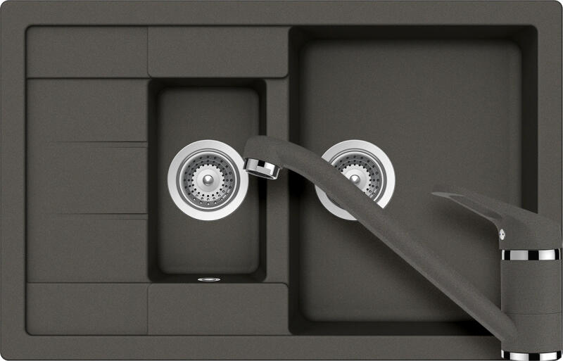 Schock Manhattan D-150S konyhai mosogatótálca Cristalite Asphalt 780 x 500 mm, gránit, megfordítható, hagyományos beépítés, aszfaltszürke munkalapba beépíthető, egy + félmedencés, csepegtetővel ellátott, megfordítható, ideálisan illeszkedik a minimum 60 cm-es alsószekrényhez. A csaptelep helye előre elkészített, könnyedén áttörhető. A csomagban találja a használati