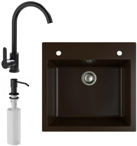 EOS Como gránit mosogató matt sötétbarna színben, amely egyszerre modern, praktikus és bármilyen méretű edény könnyen kezelhető benne. 54.5 cm-es szélesség, ami egyben helytakarékos megoldást is nyújt. Rendkívül letisztult és időtálló formavilág jellemzi, stílustól függetlenül bármely konyha nagyszerű eleme. A lyukak a mosogató medence mögötti perem részen találh