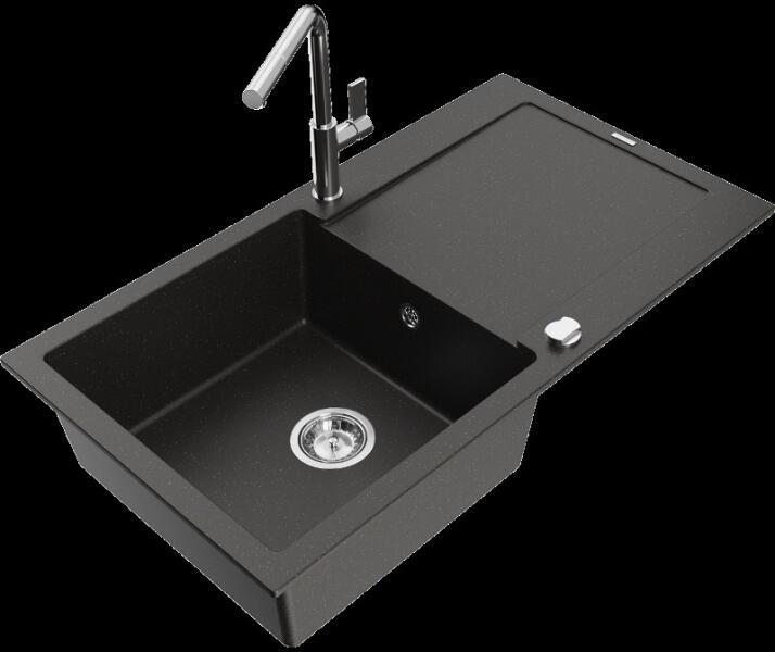 Mexen Bruno konyhai mosogató: Gyártó: Mexen Sorozat: Bruno Modell: 1 kamrás Beépítés: felülről a munkalapba süllyesztve Méretek: 795x495x200 mm Kamra mélysége: 190 mm Kamra mérete: 440x360 mm Lefolyó átmérője: 90 mm Szifon + automatikus leeresztő csavar Anyaga: gránit (80% gránit - kő, 20% gyanta) Sima felület a könnyű tisztítás érdekében: igen Megnövelt ellenállás