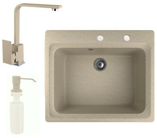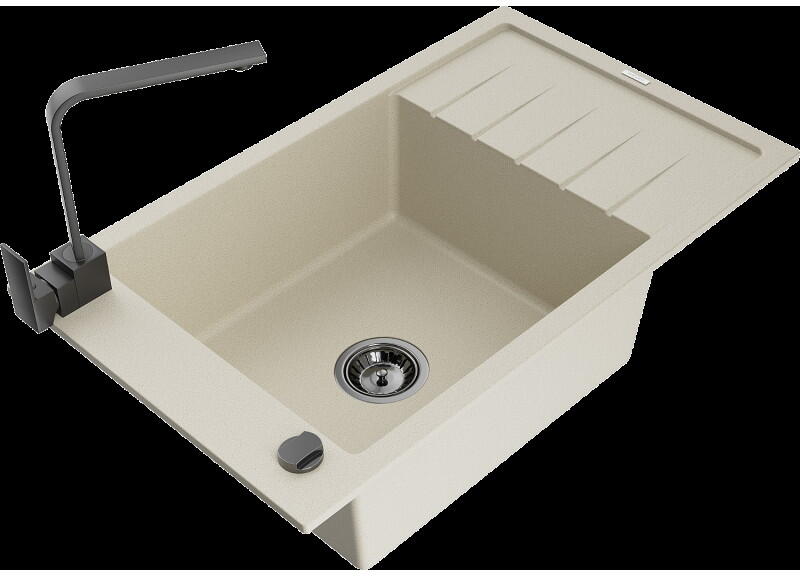 NERO Italia mosogató homokbézs színben. Hatalmas medencéjében, ami 54 x 39 cm és 20 cm mély, bármilyen edény könnyen tisztítható. Emellett egyedi formavilággal is rendelkezik, a kerekített ívek, kiválóan illenek klasszikus vagy akár modern konyhákba is. A mosogatón 2 lyuk található, egy a csaptelepnek és egy a beépíthető mosogatószer adagolónak vagy dugóemelőnek. Öss