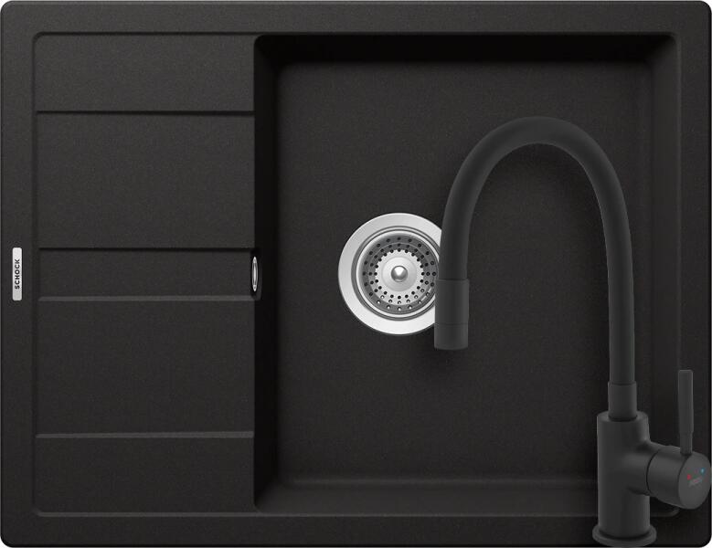 Schock Ronda D-100L Gránit Mosogató 650 x 500 mm Nero Cristalite munkalapba beépíthető, egymedencés, megfordítható, csepegtetővel ellátott, ideálisan illeszkedik a minimum 50 cm-es alsószekrényhez. A csaptelep helye előre elkészített, könnyedén áttörhető. A csomagban találja a használati útmutatót, amely részletes leírást ad a csaptelep helyének megfelelő módon tört