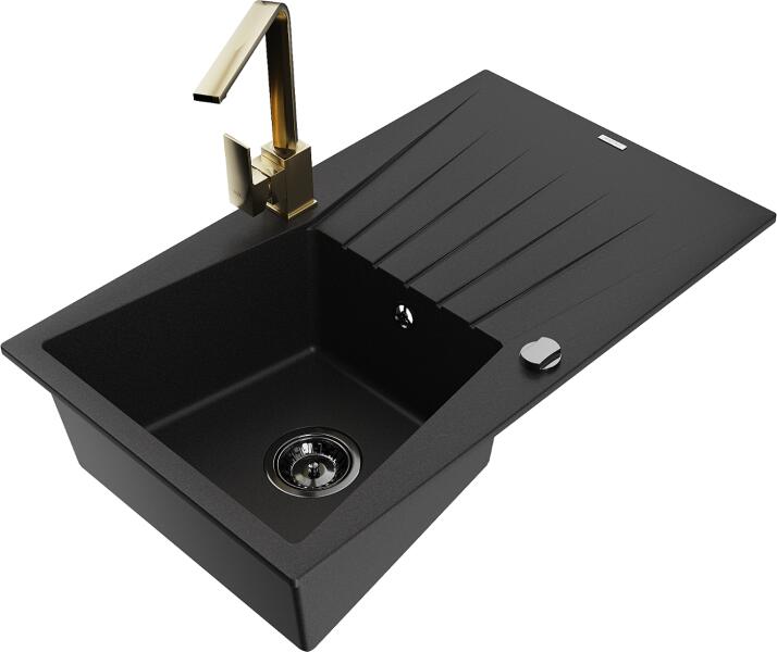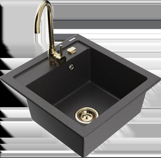 Mexen Enzo, gránit mosogató 576x465x174 mm, 1 kamrás, fekete Telma csaptelep, fekete-ezüst metál, 6506-73-670200-70-B Gyártó: Mexen Sorozat: Enzo Modell: 1 kamrás, rövid csepegtetővel Hossza 576 mm Szélesség 465 mm Magasság: 174 mm Szín: fekete - ezüst metál Kamra mélysége: 164 mm Kamra mérete: 395x320 mm Szifon + automatikus leeresztő csavar Anyaga: gránit (80% gránit - kő,