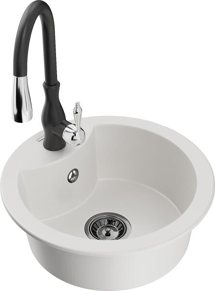 Gyártó: Mexen Sorozat: Diego + Savita Mosogató: Mérete: 488x488x167 mm Kamra - mélység: 157 mm Kamra átmérője: 406 mm Kimeneti átmérő: ø90 mm Típus: 1 kamrás Mosogató típusa: a munkalapba való beágyazáshoz Anyaga: gránit (80% gránit adalékanyag 20% gyanta) Túlfolyó nyílás: Igen Lyukak: 2 (1 a mosogató csapjához, 1 az automatikus leeresztő csavar vezérléséhez) Nagy