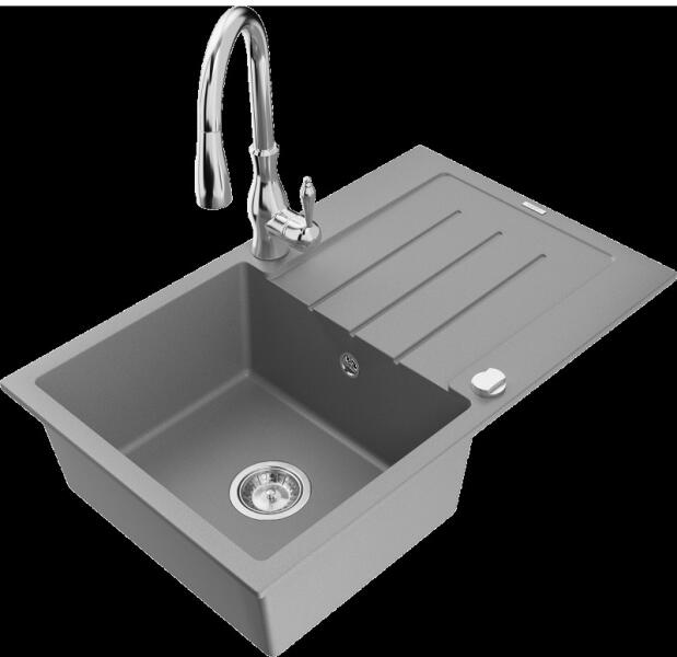 Mexen Carlos konyhai mosogató: Gyártó: Mexen Sorozat: Carlos Modell: 1,5-kamrás Beépítés: felülről a munkalapba süllyesztve Méretek: 582x475x177 mm Kamra mélysége: 162 mm (nagyobb), 102 mm (kisebb) Kamra mérete: 395x272 mm (nagyobb), 375x182 mm (kisebb) Lefolyó átmérője: 90 mm Szifon + automatikus leeresztő csavar Anyaga: gránit (80% gránit - kő, 20% gyanta) Sima felület a k