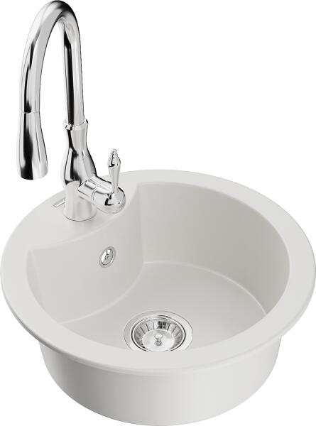 Gyártó: Mexen Sorozat: Diego + Savita Mosogató: Mérete: 488x488x167 mm Kamra - mélység: 157 mm Kamra átmérője: 406 mm Kimeneti átmérő: ø90 mm Típus: 1 kamrás Mosogató típusa: a munkalapba való beágyazáshoz Anyaga: gránit (80% gránit adalékanyag 20% gyanta) Túlfolyó nyílás: Igen Lyukak: 2 (1 a mosogató csapjához, 1 az automatikus leeresztő csavar vezérléséhez) Nagy