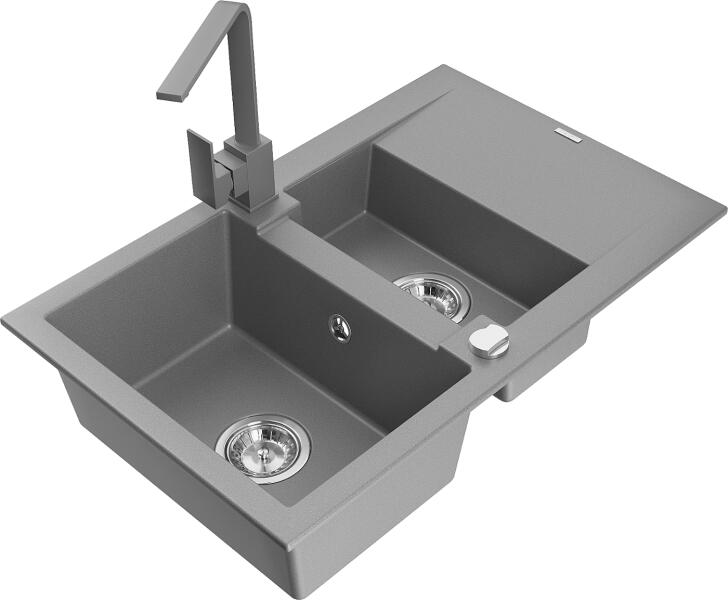 Mexen Gaspar, gránit mosogató 737x475x177 mm, 1,5 kamrás és szürke csaptelep Rita, szürke, 6507-71-670300-71 Gyártó: Mexen Sorozat: Gáspár Modell: 1,5-kamrás, rövid leeresztővel Felszerelés: munkalapra Szín: szürke Hossza 737 mm Szélesség 475 mm Magasság: 177 mm Kamra mélysége: 167 mm (nagyobb), 107 mm (kisebb) Kamra mérete: 395x272 mm (nagyobb), 375x182 mm (kisebb) Lefolyó