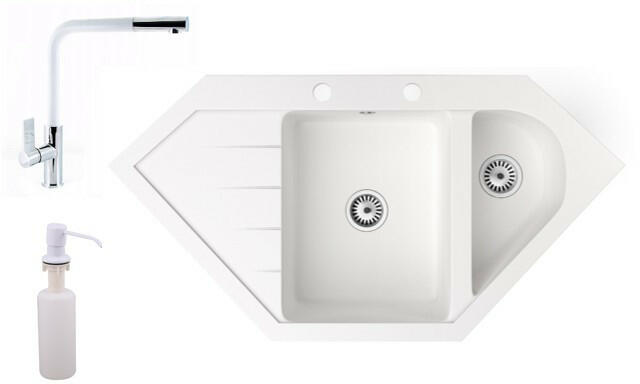 NERO Joker sarok mosogató, ami egyben praktikus és impozáns látványelem is a konyhában. Tökéletes választás azokba a konyhákba, ahol a mosogató rész a sarokban lett kialakítva. Szögletes, határozott vonalvezetése nagyszerűen illik modern vagy minimál stílusú konyhákba. A mosogatón 2 lyuk lett kialakítva, egy a csaptelepnek és egy a beépíthető mosogatószer adagolónak v